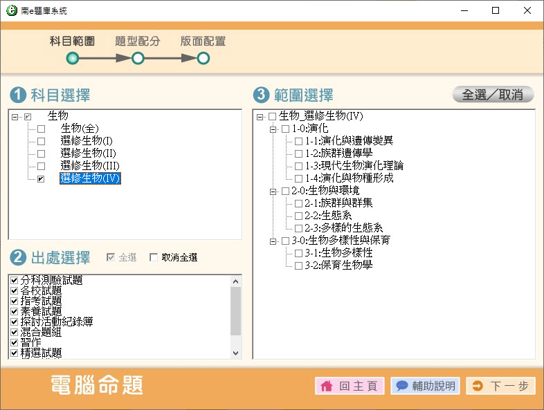 112學年上學期 高中命題光碟 南一版 生物科(全、選修I、選修II、選修III、選修IV)(108課綱) 題庫光碟