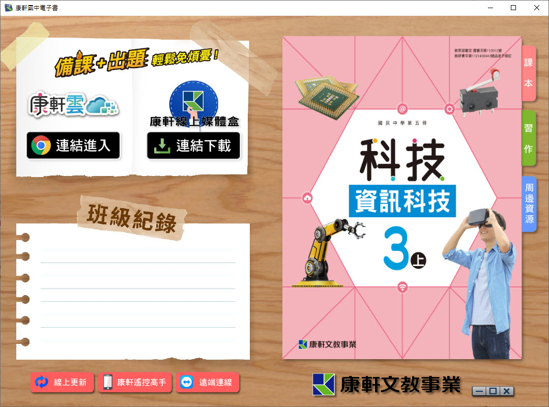 112學年上學期 國中 康軒版 資訊科技電子書 3年級(含課本、習作含解答、教學資源)教學光碟