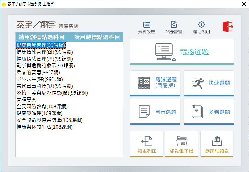 112學年上學期 高中命題光碟 泰宇版 國防健護(99課綱+108課綱) 題庫光碟